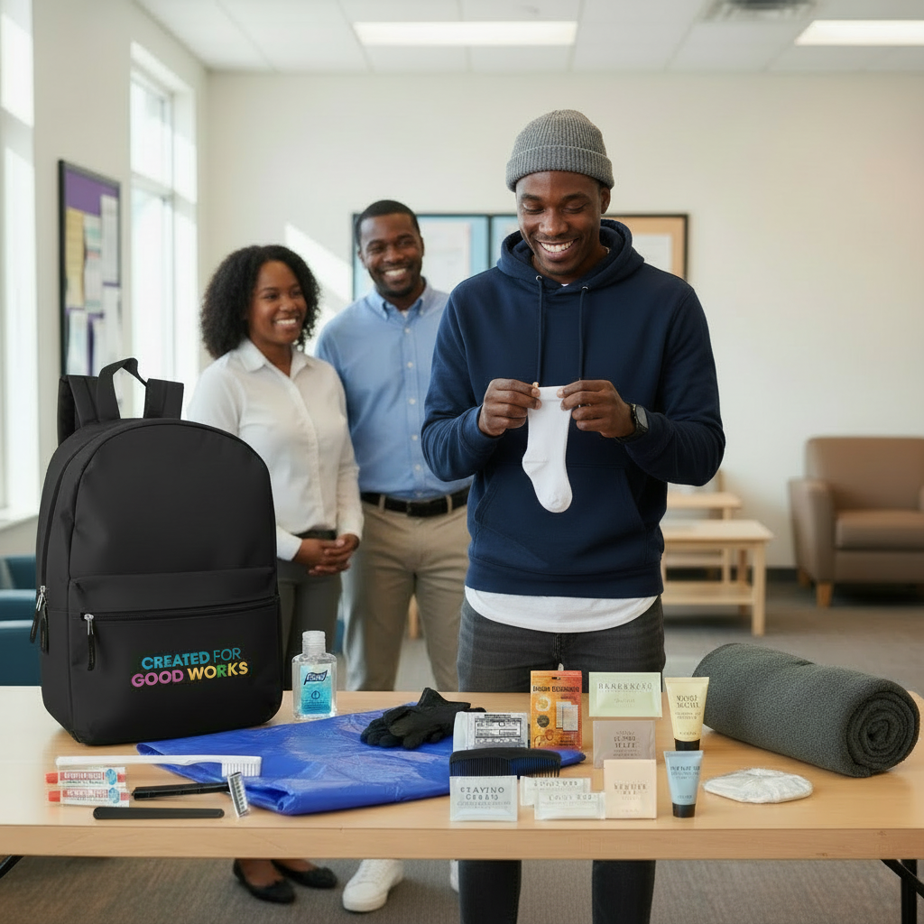 Through our established partnerships with local service providers and our commitment to monthly community engagement, we ensure hygiene kits reach those who need them most—paired with trauma-informed, person-centered engagement from someone who's been there.